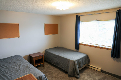 Residents live in shared, apartment-style housing that promotes independence in a supportive setting. Each unit includes a kitchen, living room, and bedrooms, with access to recreation areas, bikes, and outdoor space.